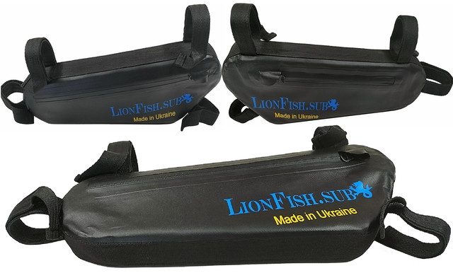 Ми представляємо класичне рішення — сумку на раму велосипеда. Racer Bag LionFish.sub — це сумка, яка повністю вписується в основний трикутник рами велосипеда. Вона є наймісткішою, найлегшою та найнадійнішою з велосумок на раму, оскільки не має додаткових кишень, перегородок і зайвої фурнітури. Сумка на раму велосипеда водонепроникна та дає змогу витримувати затяжні дощі. Оскільки її завантаження практично не впливає на керованість велосипедом і зміну його центру ваги, у неї рекомендується складати різні речі. З огляду на специфіку розміщення всередині рамної сумки, все, що в ній є, найменше зазнає ризику пошкодження в разі падіння або удару об будь-які предмети.