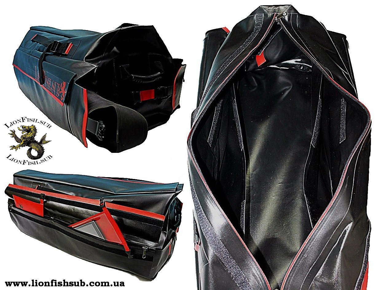 Будь-який водний похід вимагає ретельного добору ефективного спорядження. Для транспортування та тимчасового зберігання обладнання використовують спеціальні міцні сумки. Ми пропонуємо для підводних мисливців, дайверів, рибалок, туристів, спортсменів і шанувальників активного відпочинку, асортимент спеціалізованих товарів із водонепроникним ефектом. А також унікальну сумку чудової якості від професійного виробника LionFish.sub. Функціональний рюкзак — Сумка призначена для перенесення важкого дайверського спорядження і/або комплекту спорядження для підводного мисливця. Ще однією особливістю є можливість надійно зафіксувати ласти для підводного полювання. Це водонепроникний, зручний рюкзак- Сумка для спорядження, що дає змогу захистити одяг і обладнання від потрапляння води. Для цієї моделі не страшна не тільки вода, вона з легкістю впорається з брудом, піском або снігом. Може застосовуватися в будь-яких водних видах спорту.