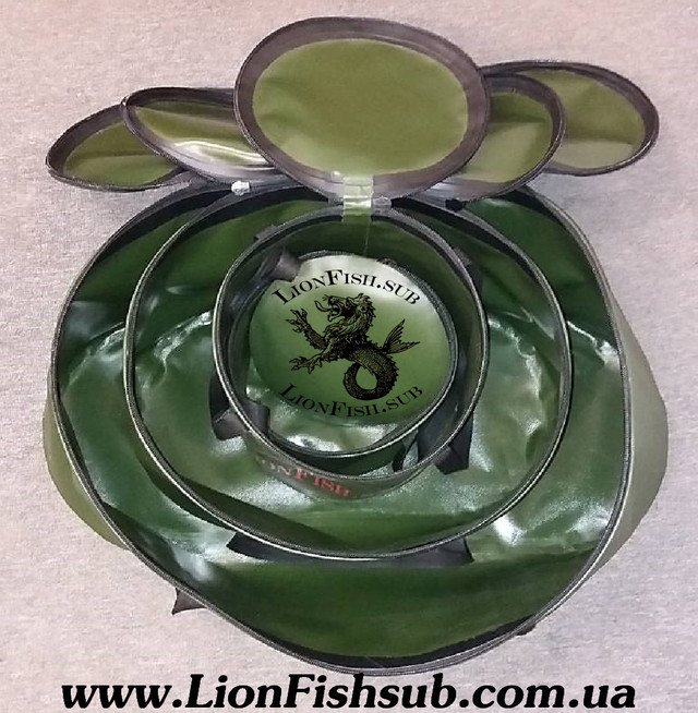 Сучасні технології дозволили вирішити проблему перевезення і збереження атрактантів та підкорм. Складне відро для риболовлі з кришкою овальні форми Дає пригоду на будь-яку відстань у початковому вигляді. Компанія LionFish.sub Виготовляє великий вибір складних відер для пригодування різних розмірів і не залишить без покупки навіть найбільш вимогливого покупця: